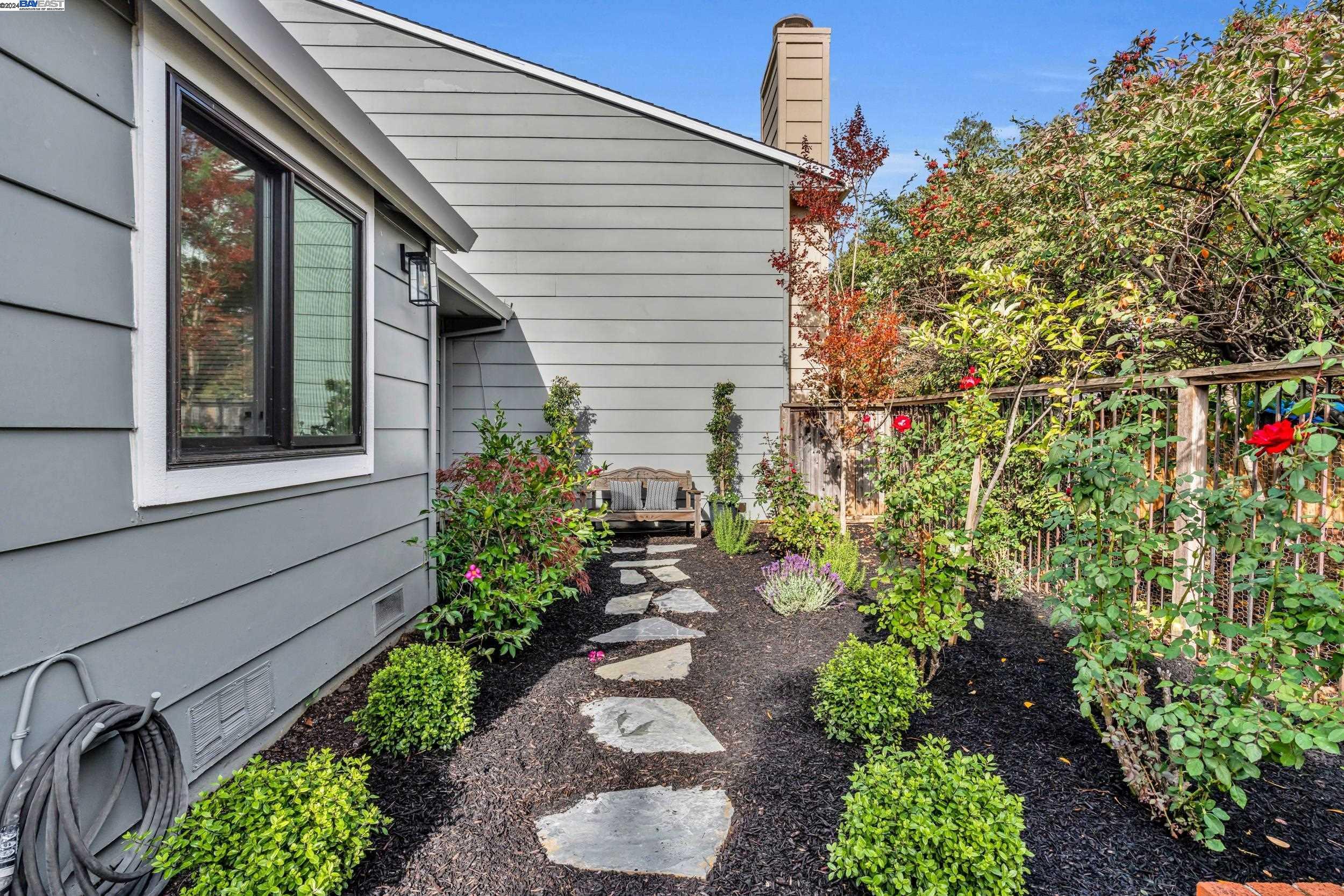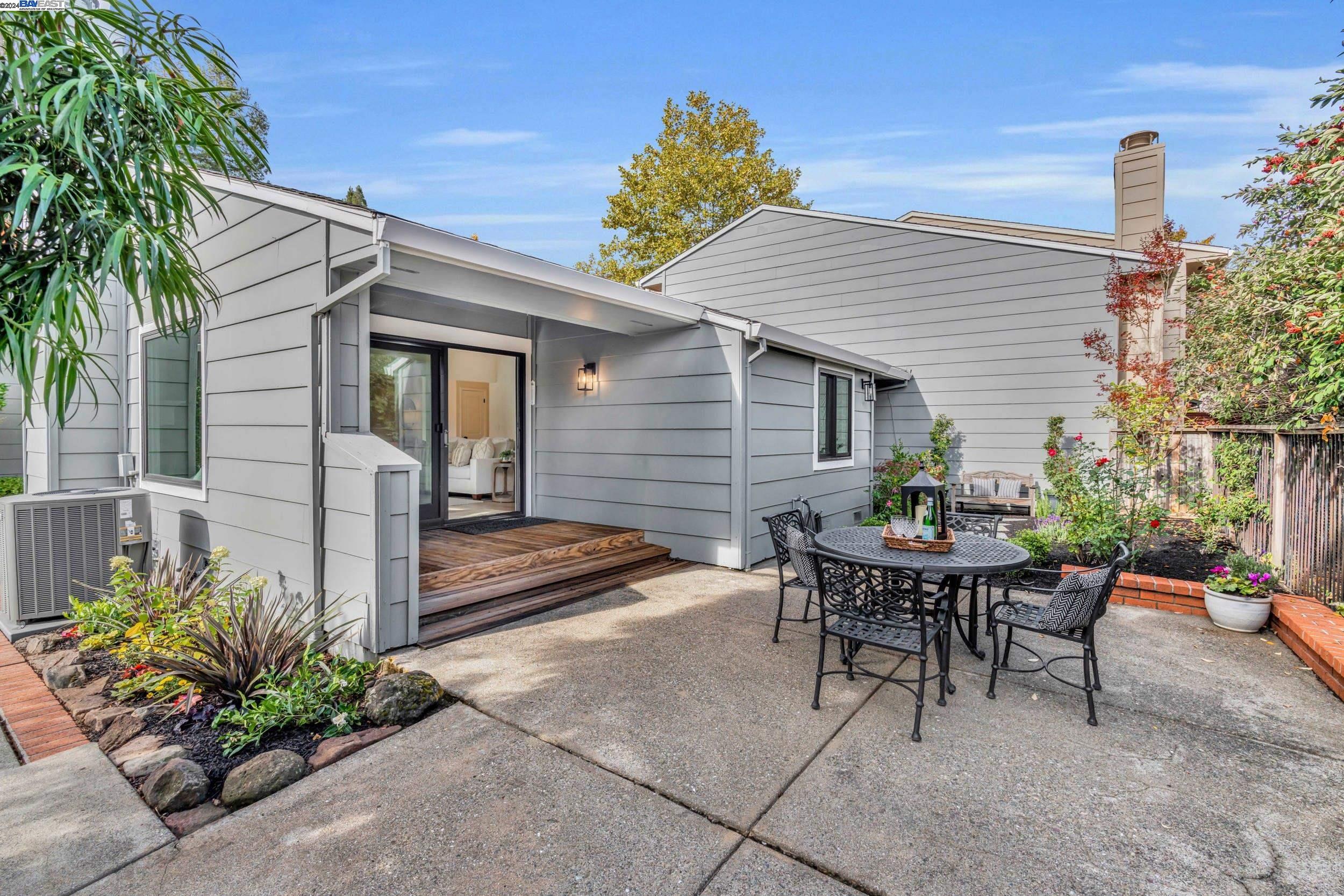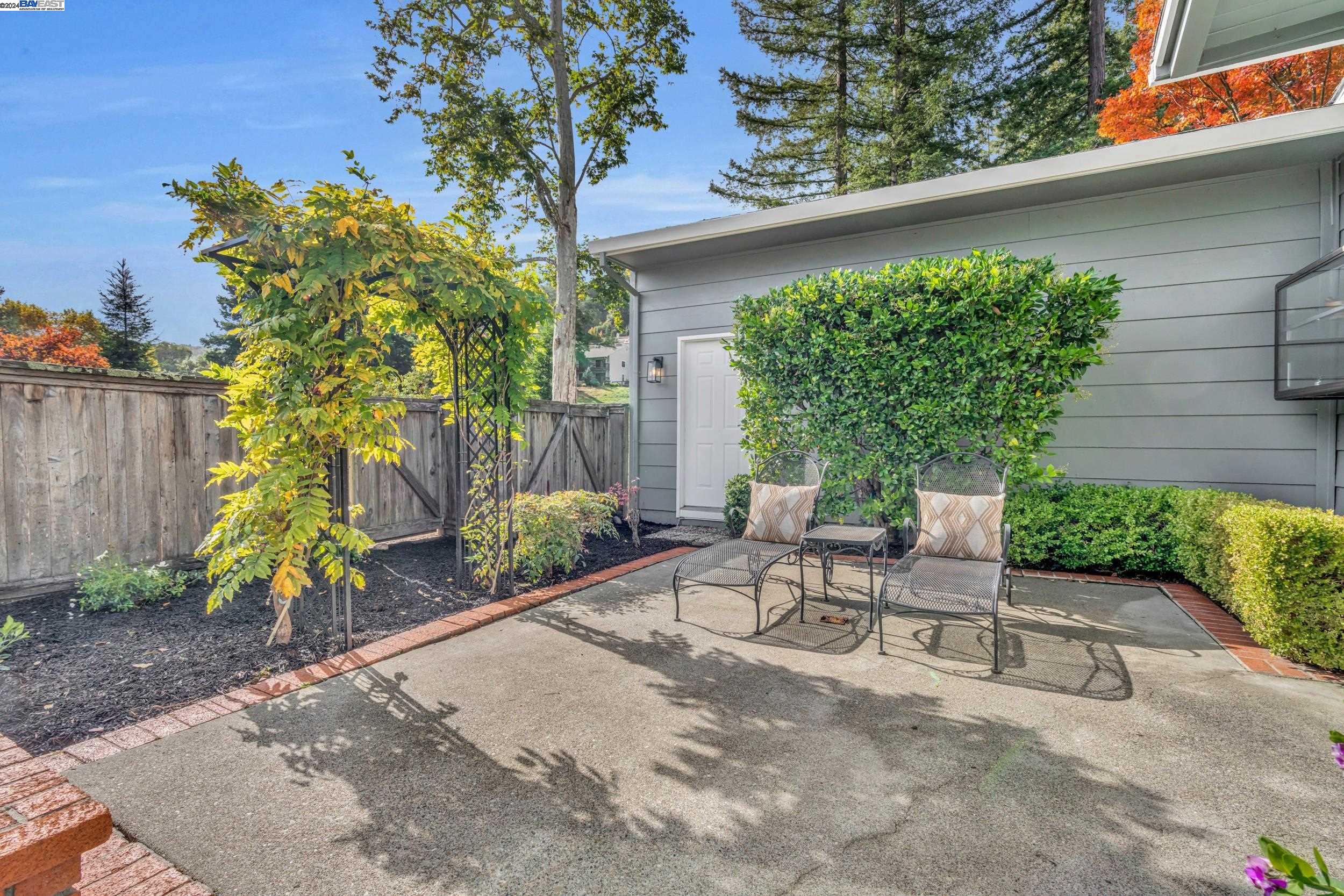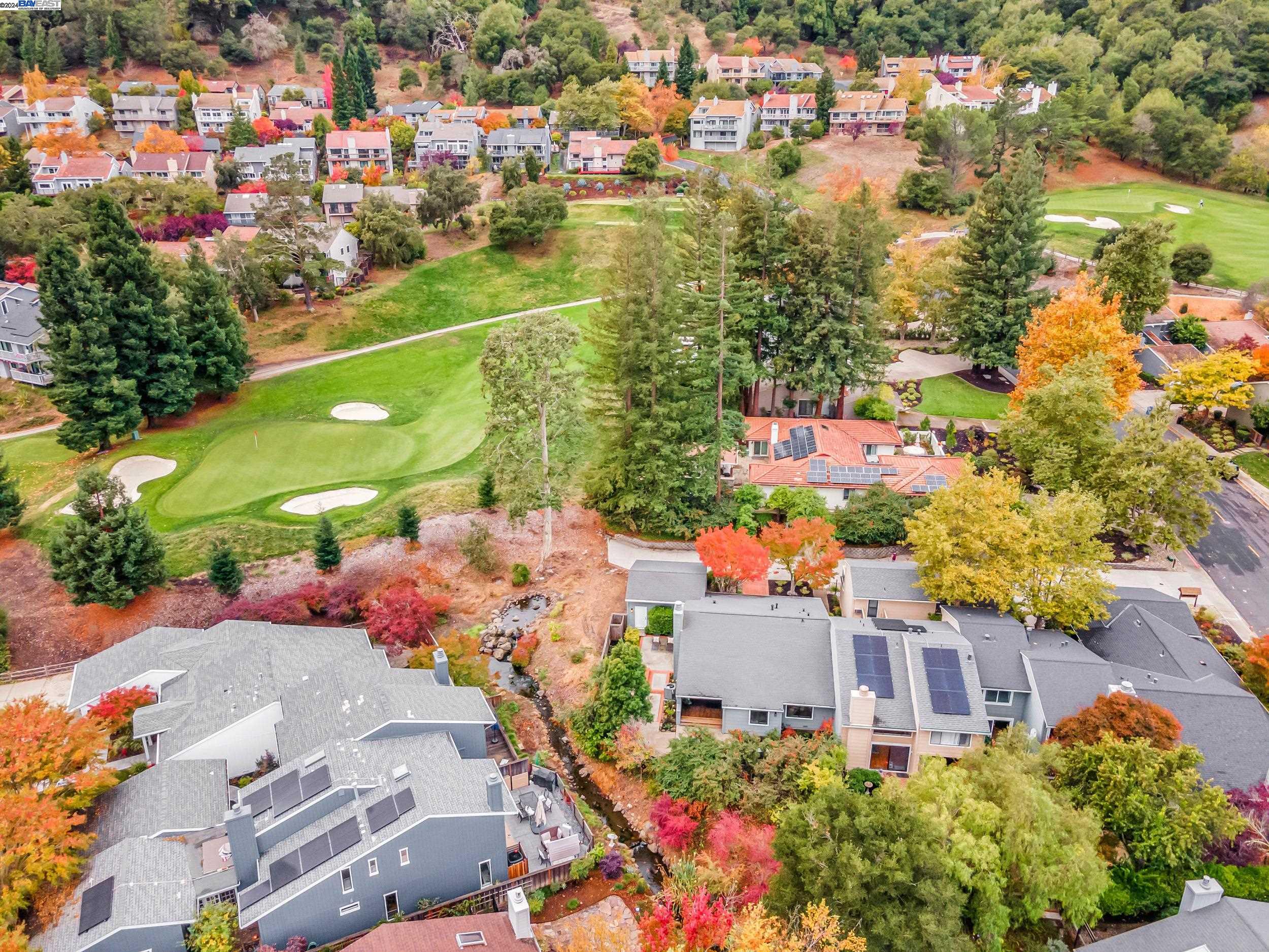 Fabulous updated single-story end unit townhome in prime Moraga Country Club location - quiet, peaceful setting next to creek, with a peek of the golf course and lovely views of surrounding hills. All new luxury vinyl plank flooring, baseboards, paint & lighting, beautifully remodeled kitchen and renovated bathrooms. Fabulous open floor plan with vaulted ceilings in living room, 3rd bedroom/den with closet and loads of natural light. Wonderful wrap-around yard featuring deck & patios, fruit trees, rose gardens and privacy. Just two short blocks to MCC clubhouse, golf, tennis/pickle ball and pool, but so quiet it will feel like you're miles away.