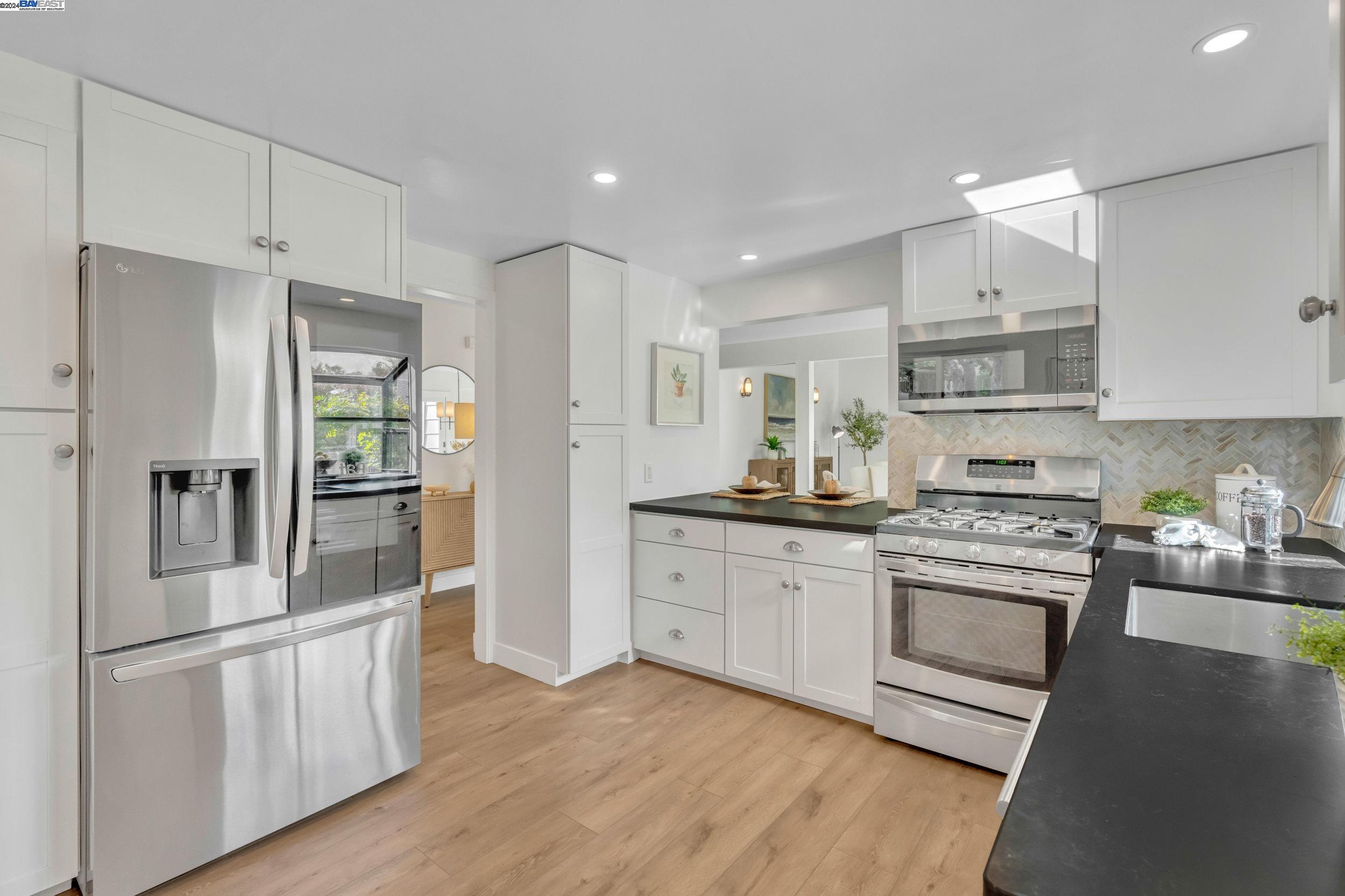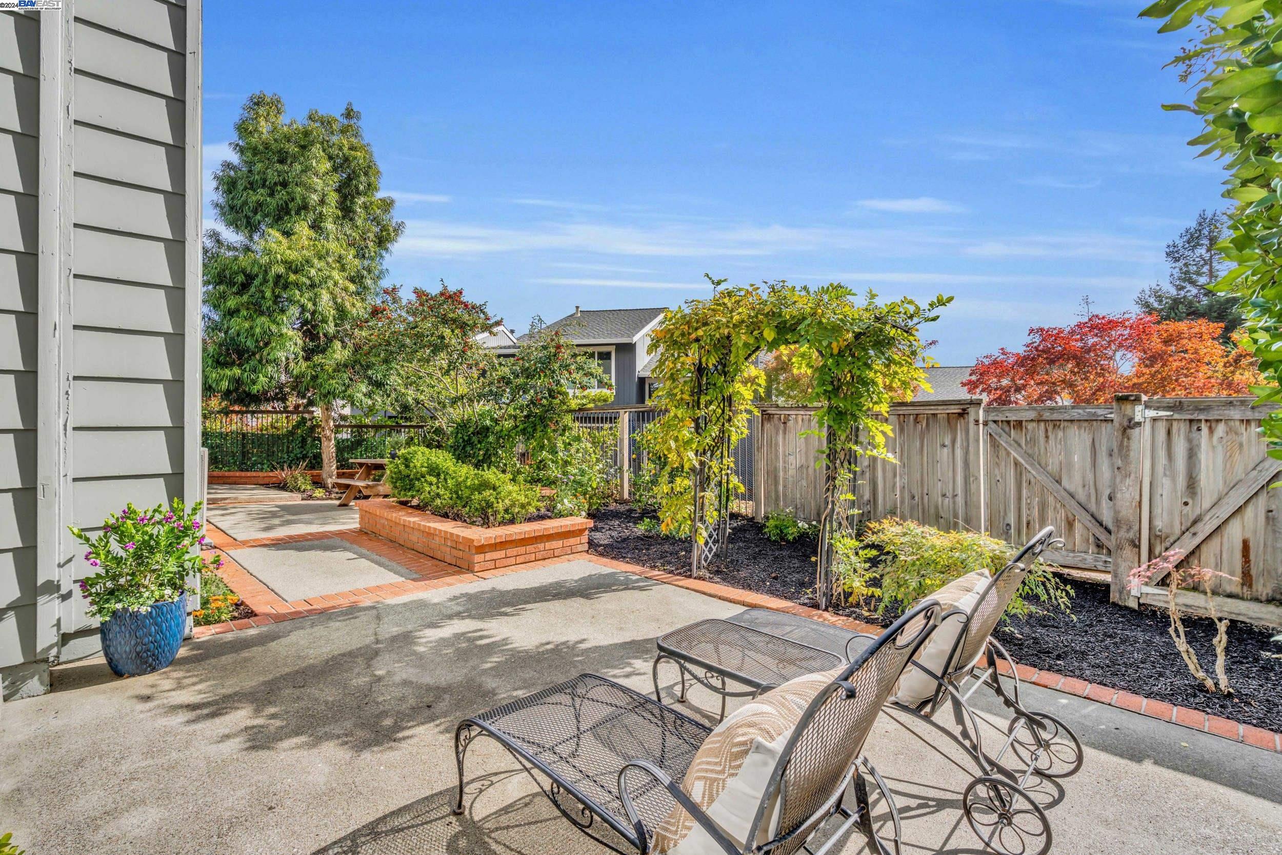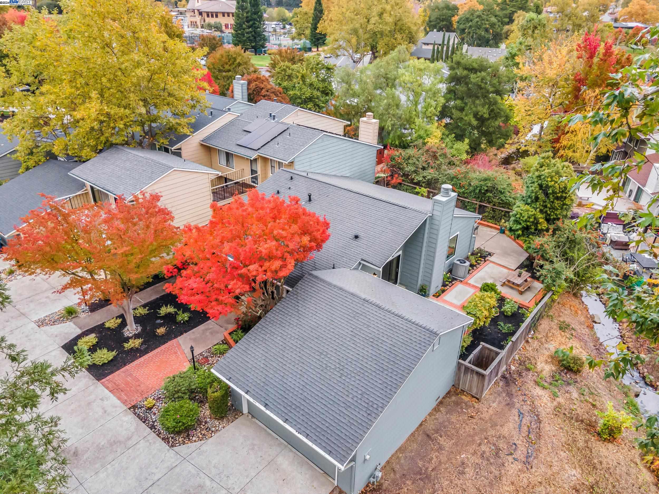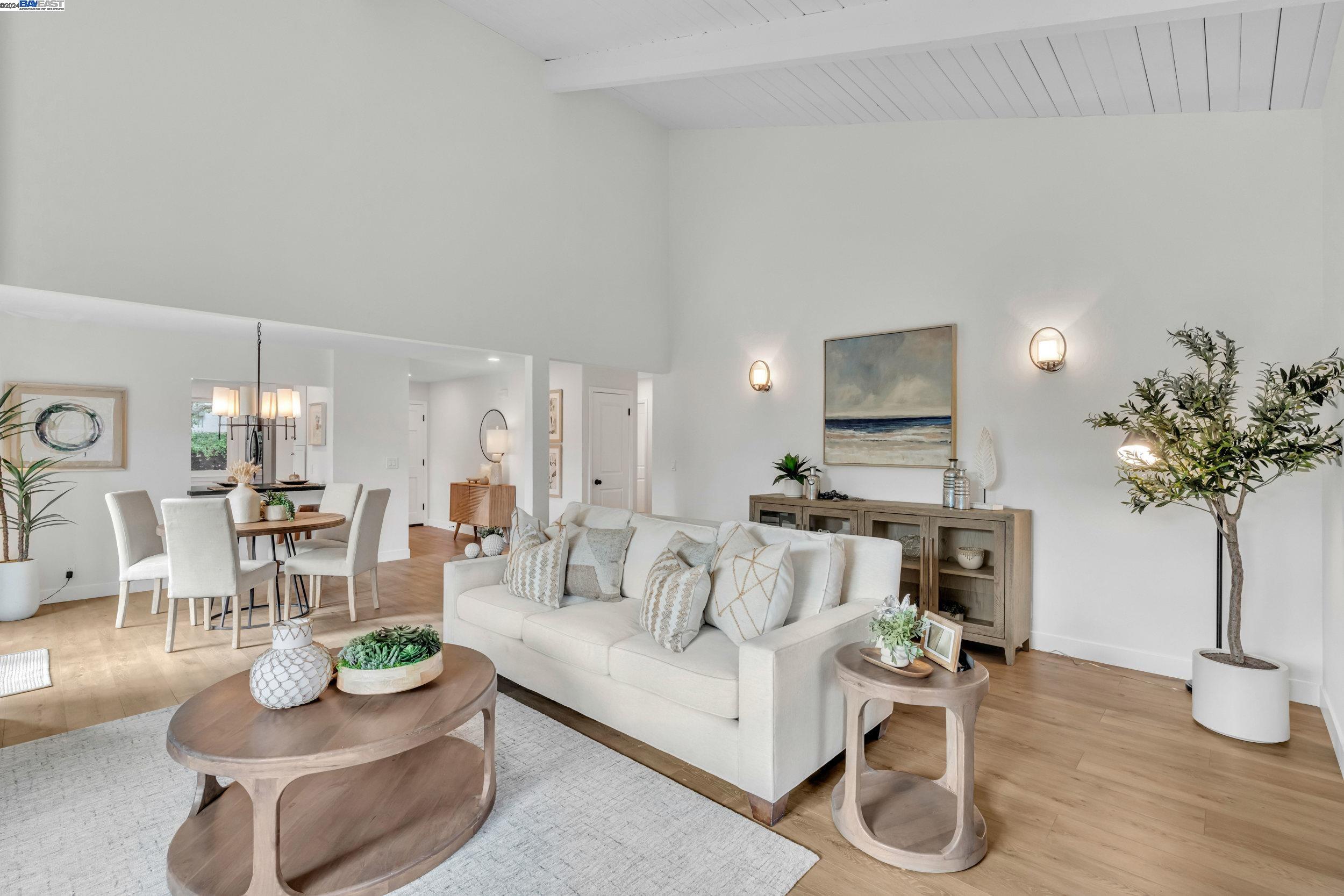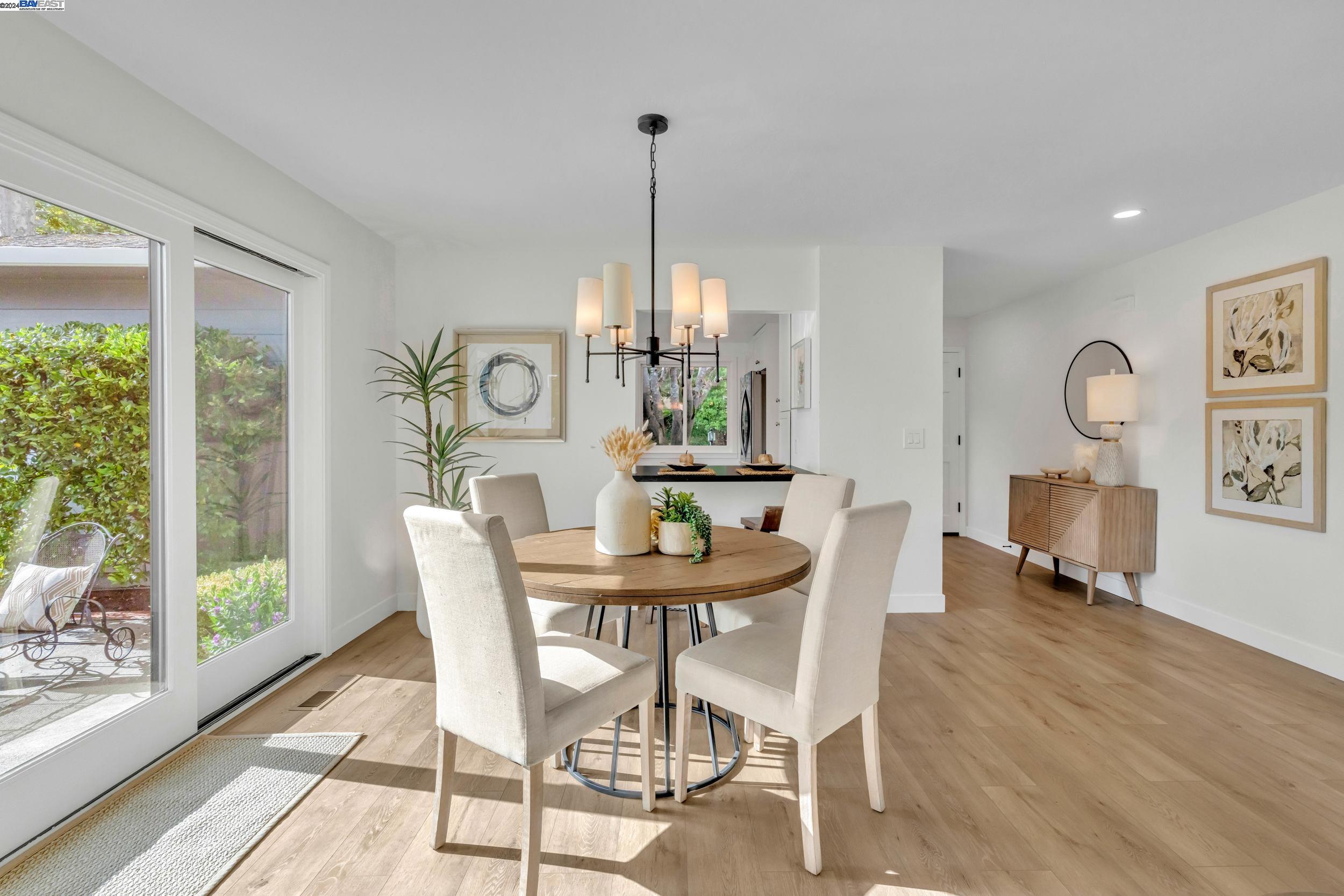 Fabulous updated single-story end unit townhome in prime Moraga Country Club location - quiet, peaceful setting next to creek, with a peek of the golf course and lovely views of surrounding hills. All new luxury vinyl plank flooring, baseboards, paint & lighting, beautifully remodeled kitchen and renovated bathrooms. Fabulous open floor plan with vaulted ceilings in living room, 3rd bedroom/den with closet and loads of natural light. Wonderful wrap-around yard featuring deck & patios, fruit trees, rose gardens and privacy. Just two short blocks to MCC clubhouse, golf, tennis/pickle ball and pool, but so quiet it will feel like you're miles away.