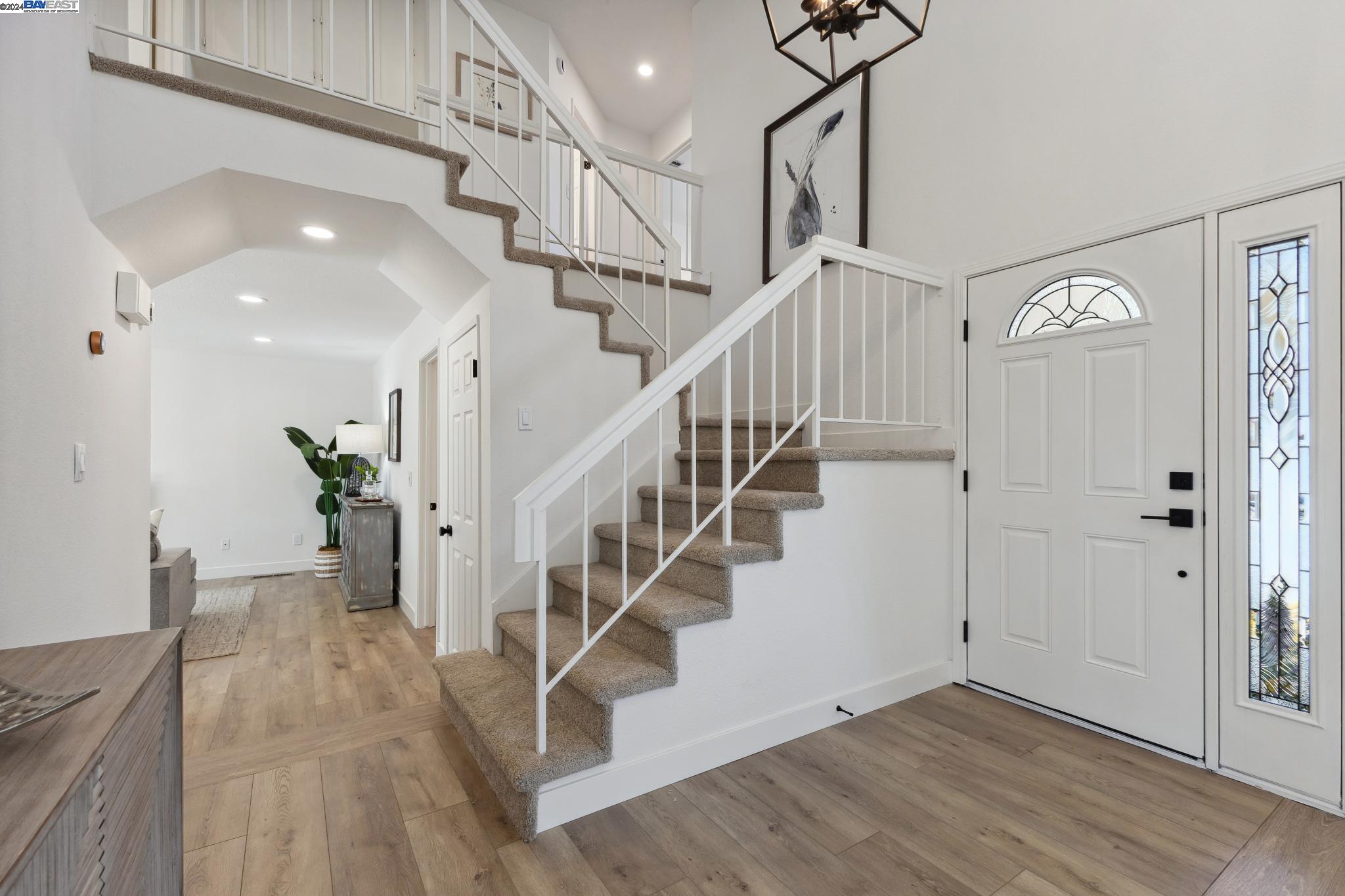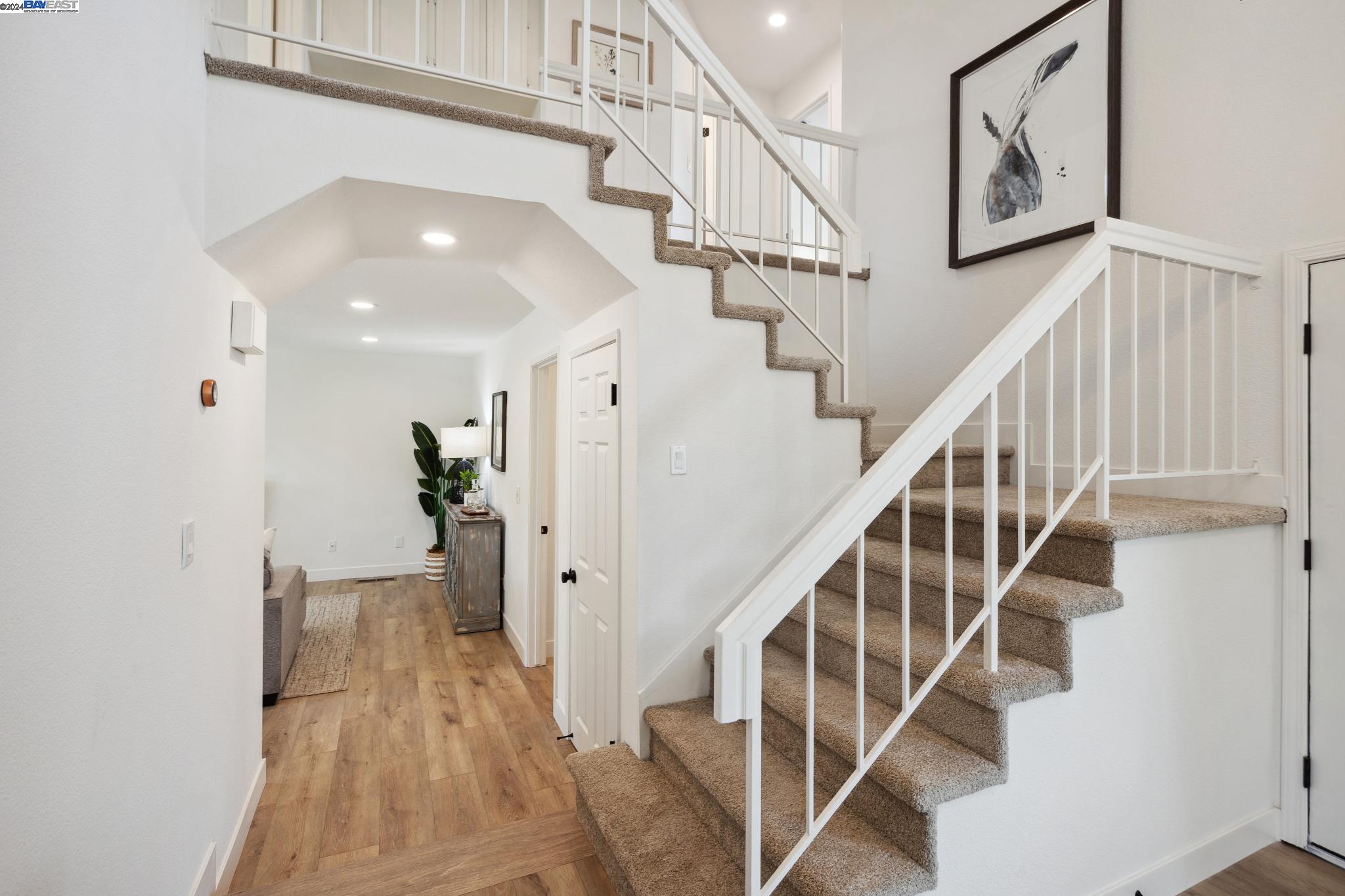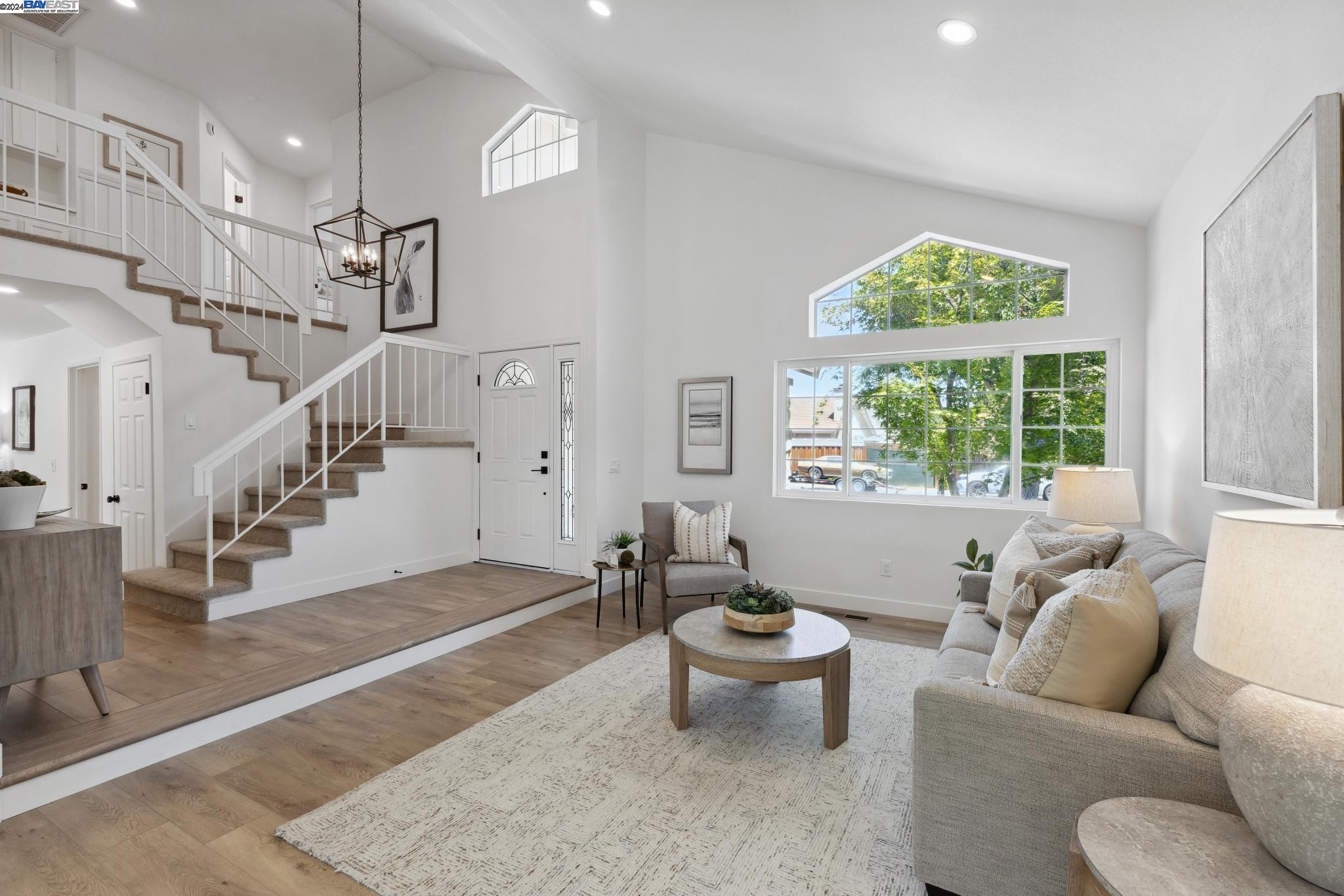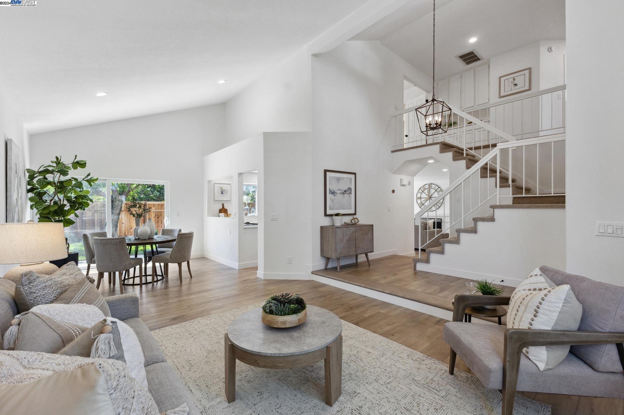 Fabulous 2-story home, updated from top to bottom, inside and out! All new luxury vinyl plank flooring throughout main level and upstairs bathrooms, new carpeting in bedrooms. Spacious living room and dining room with vaulted ceilings, recessed lighting and loads of natural light. Beautifully updated kitchen with white cabinets, quartz countertops, garden window and built-in desk - open to warm and inviting family room with sliding glass doors to park-like back yard. Inside laundry room and half bathroom on main level. Spacious primary bedroom suite with vaulted ceilings, walk-in closet and updated ensuite bathroom. Two additional bedrooms and updated hall bath upstairs. Aquasana whole house water filter, OWNED 4.9kw solar. All new landscaping front and back - huge lawns, patio areas and side yard with storage. Close to schools, parks, shopping & more!